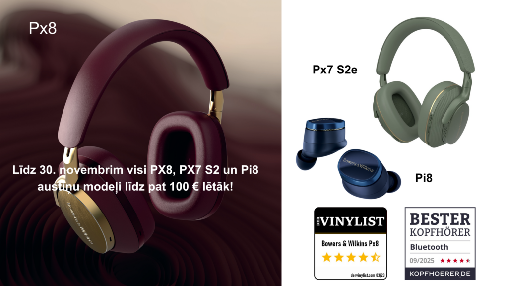 Līdz 30. novembrim Bowers & Wilkins austiņas PX7 S2e, PX8 un Pi8 – ar atlaidi līdz pat 100 €!